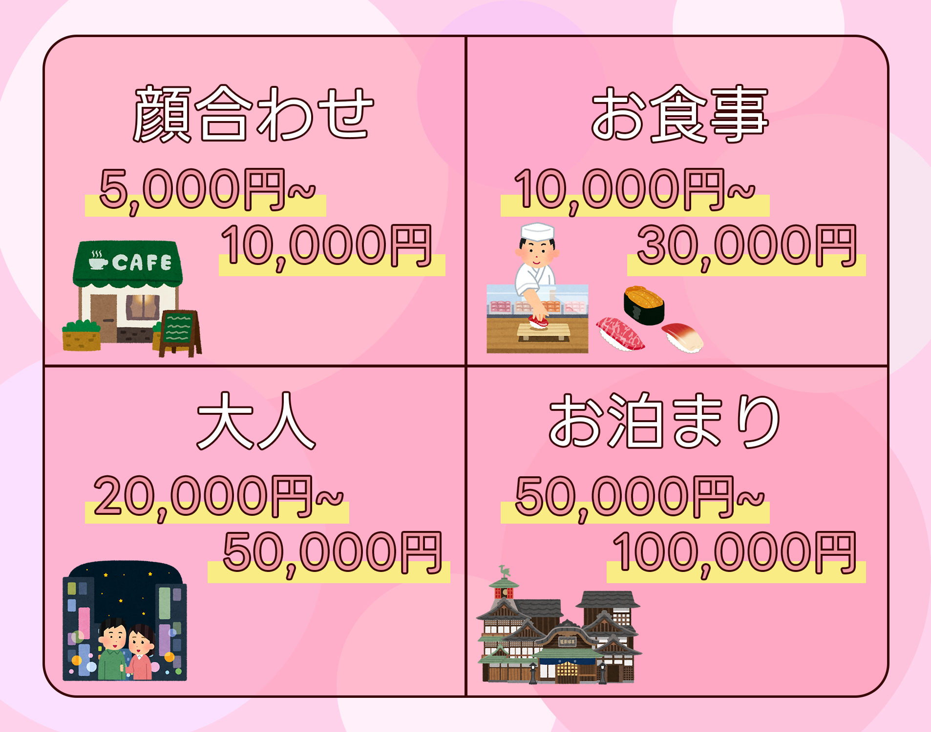 ・パパ活の相場はデート内容によって変わります